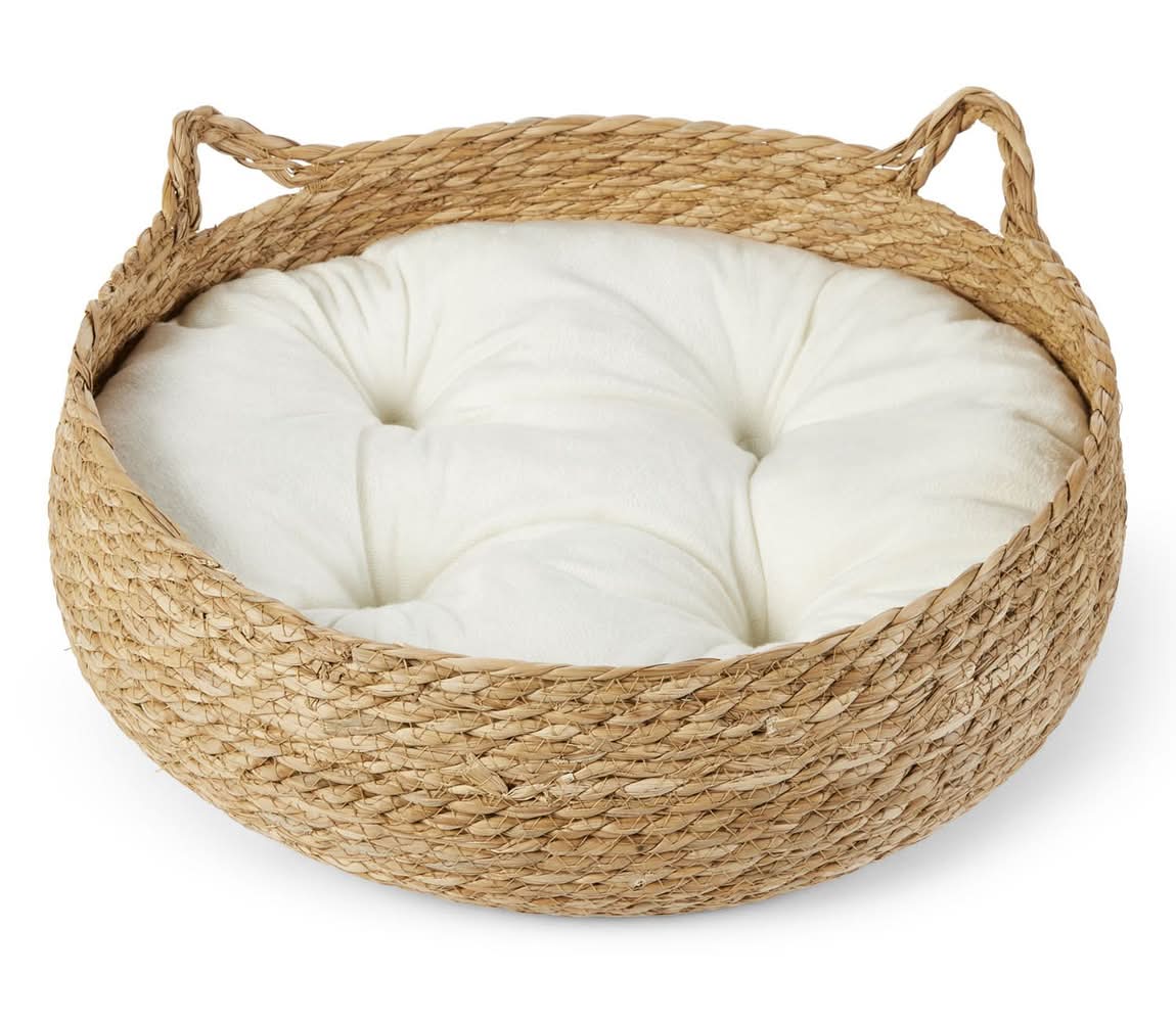 Essentials Rattan Basket Cuddler Cat Bed, Ivory