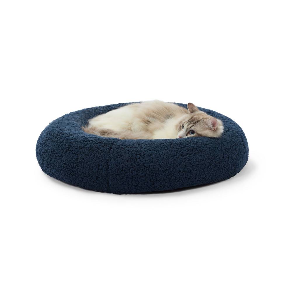 Whisker City Plush Donut Cat Bed, 22\"L x 22\"W x 5\"H, Navy