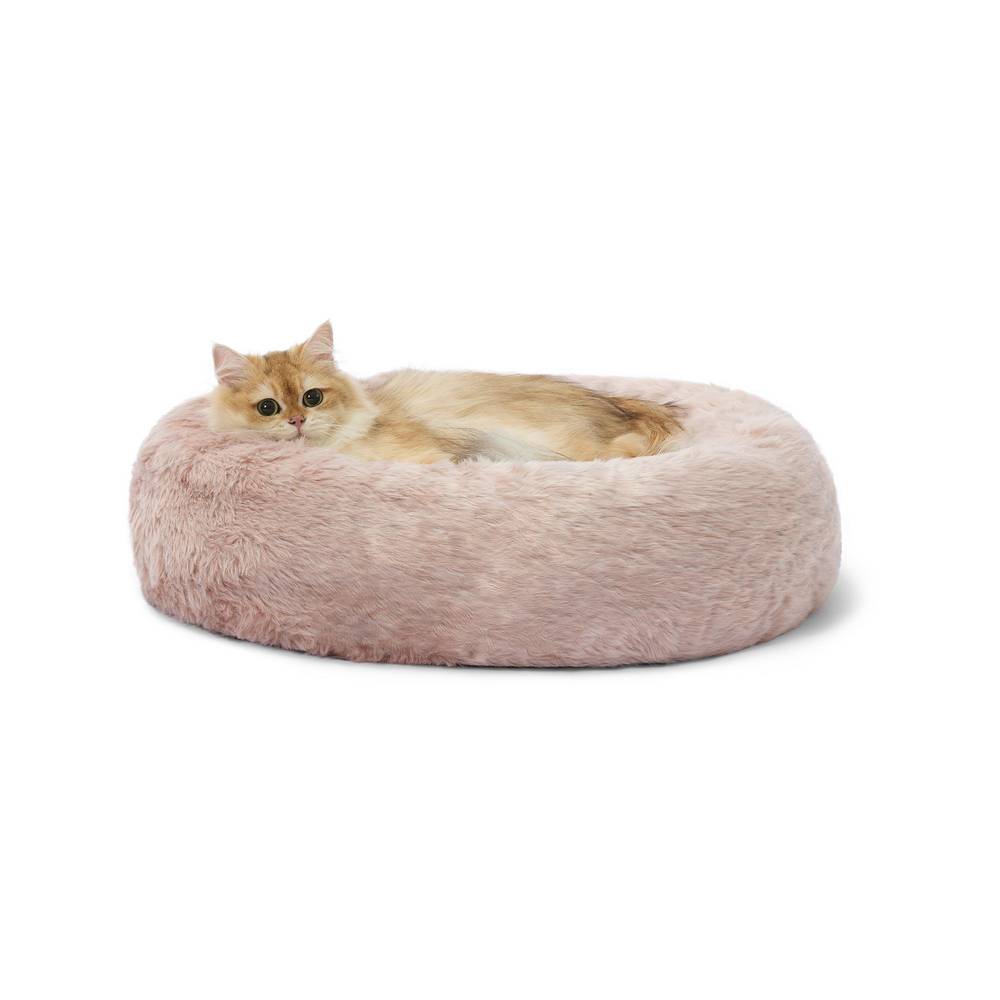 Whisker City Plush Donut Cat Bed, 22" x 22" x 5", Pink