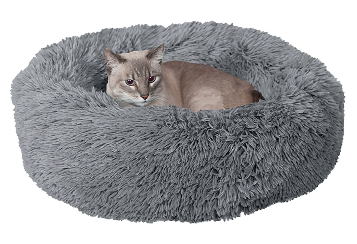 FurHaven Calming Cuddler Donut Pet Bed, Grey