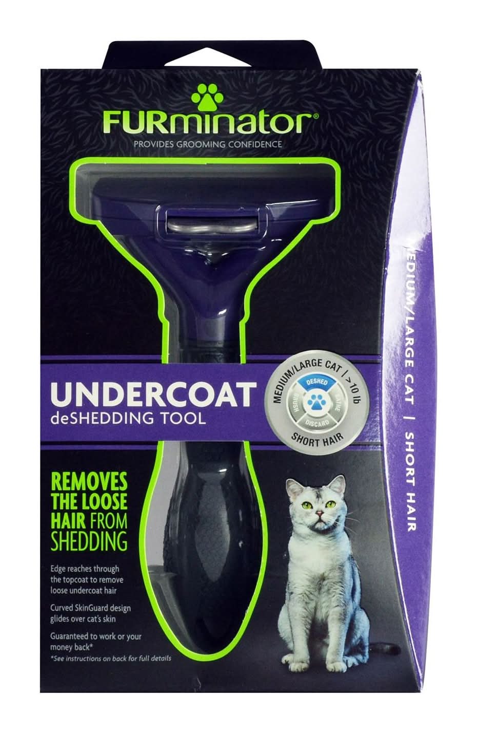 FURminator Short Hair Undercoat Deshedding Cat Tool, Large, Purple (204.1 g)