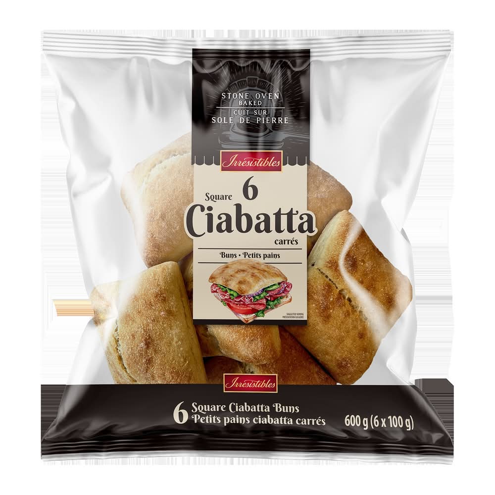 Irrésistible Square Ciabatta Buns (600 g, 6 ct)