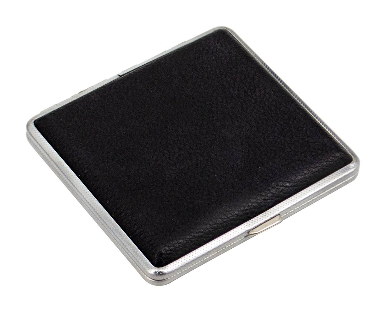 Stainless Steel Cigarette Case With Faux Leather Cover, 3.8x4.1 in, Black-White