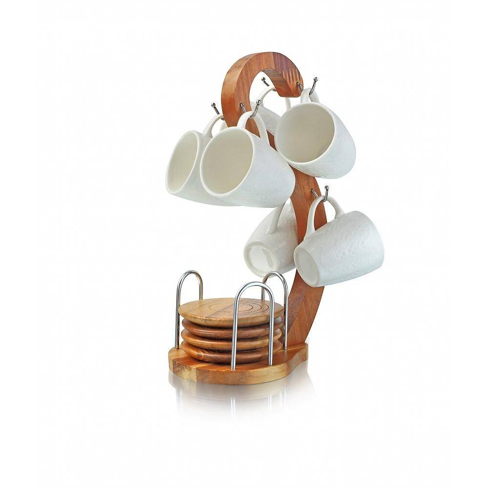 Homeart Laced Ceramic and Wood Espresso Set, White
