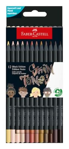 Faber-Castell Black Edition Skin Tones Coloured Pencils, Assorted (12 ct)