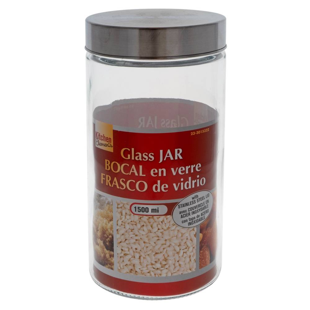 Kitchen Elements Round Glass Jar With Stainless Steel Lid Cap 1500 ml