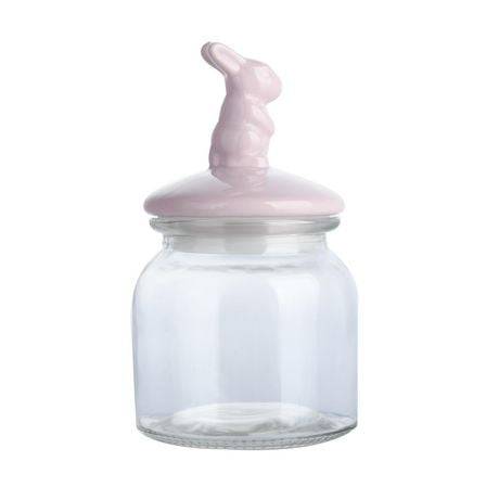 Way to Celebrate Glass Jar With Pink Ceramic Rabbit Lid 24 oz
