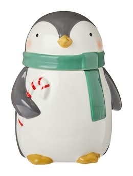 Everyday Essentials Penguin Cookie Jar With Lid, Grey-White-Green-Red