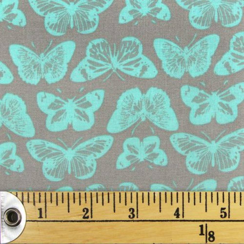 Fabric Creations Grey With Aqua Blue Butterflies Pre-Cut Fabric (100 g)