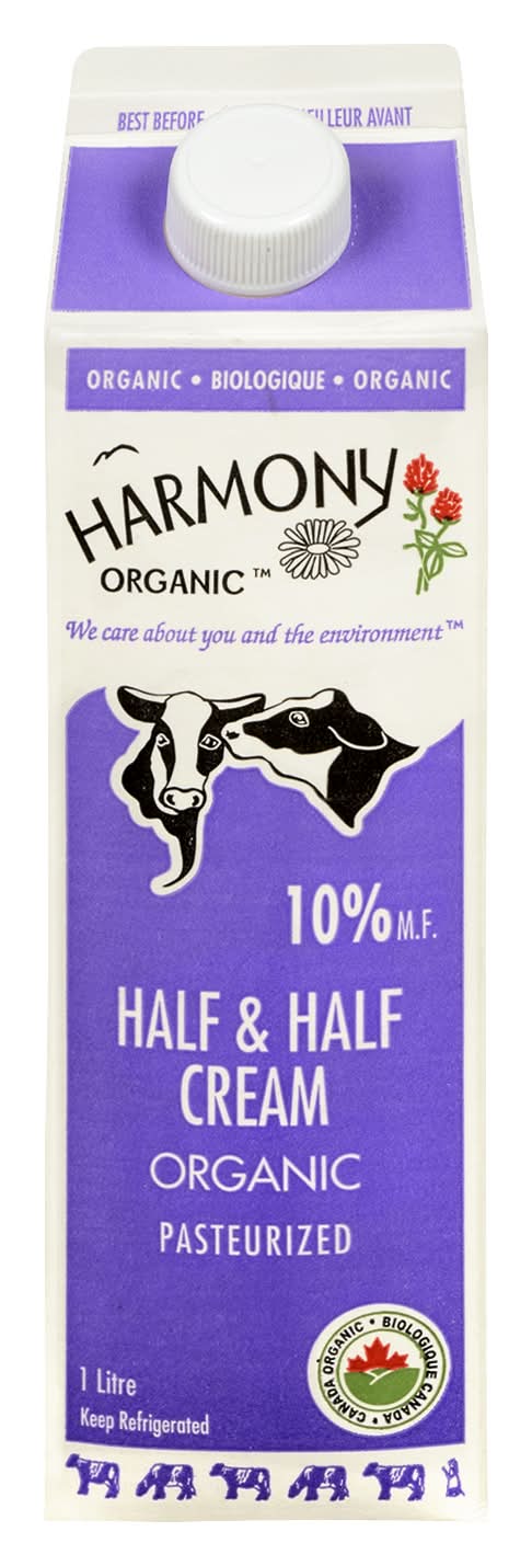Harmony Organic Pasteurized 10% Half & Half Cream (1 L)