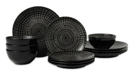 Mesa Ceramics Granito Dinnerware Set, Black (12 ct)