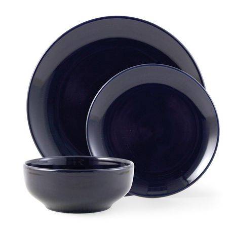 Mainstays Chiara Stoneware Navy Dinnerware Set, Navy (12 ct)