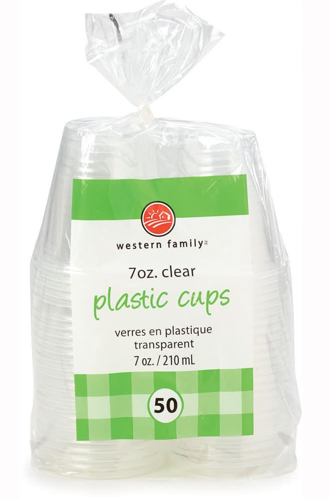 Western Family Plastic Cups 210 ml, Clear (50 ct)