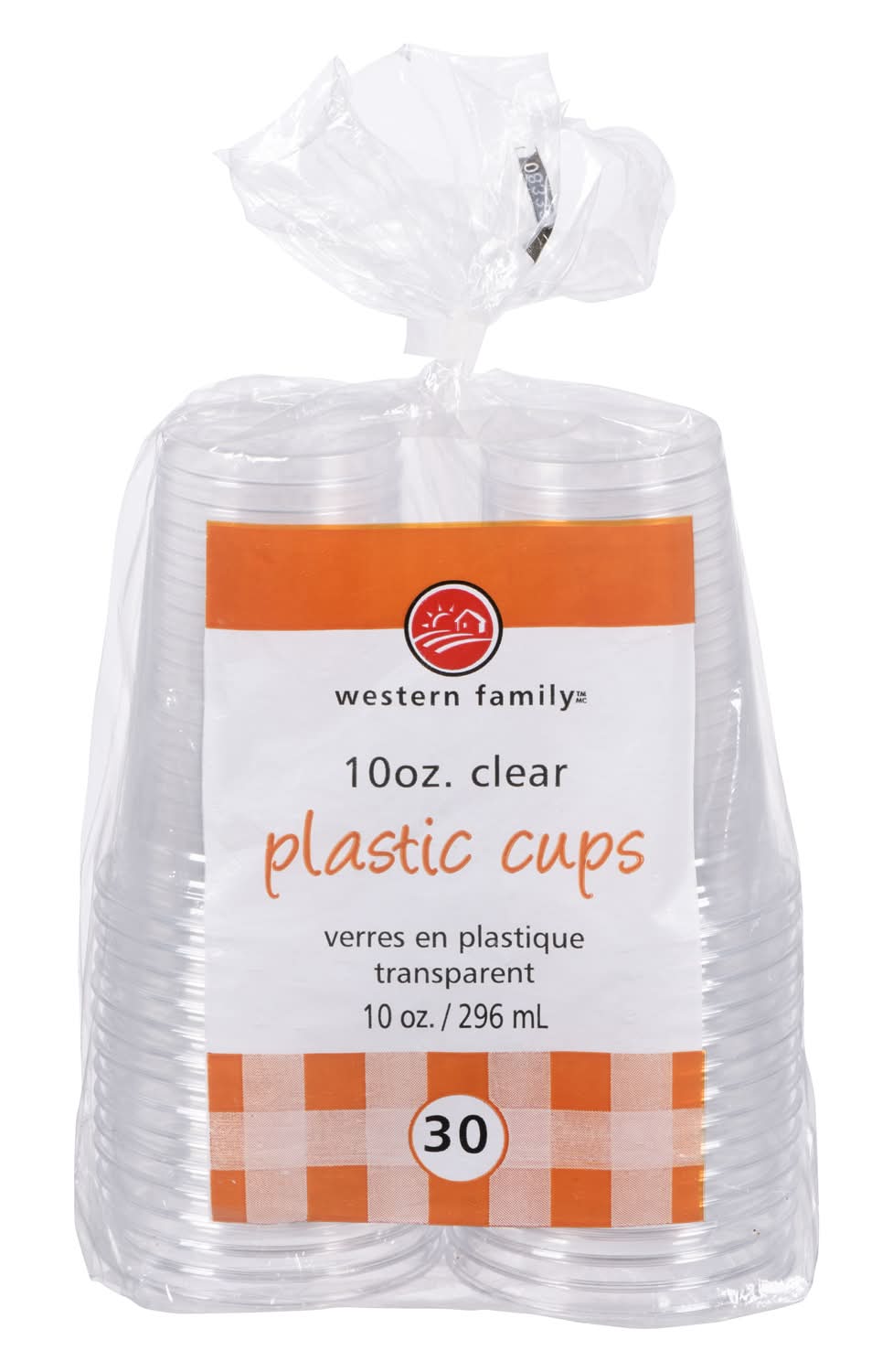 Western Family Plastic Disposable Cups 296 ml, Clear (30 ct)