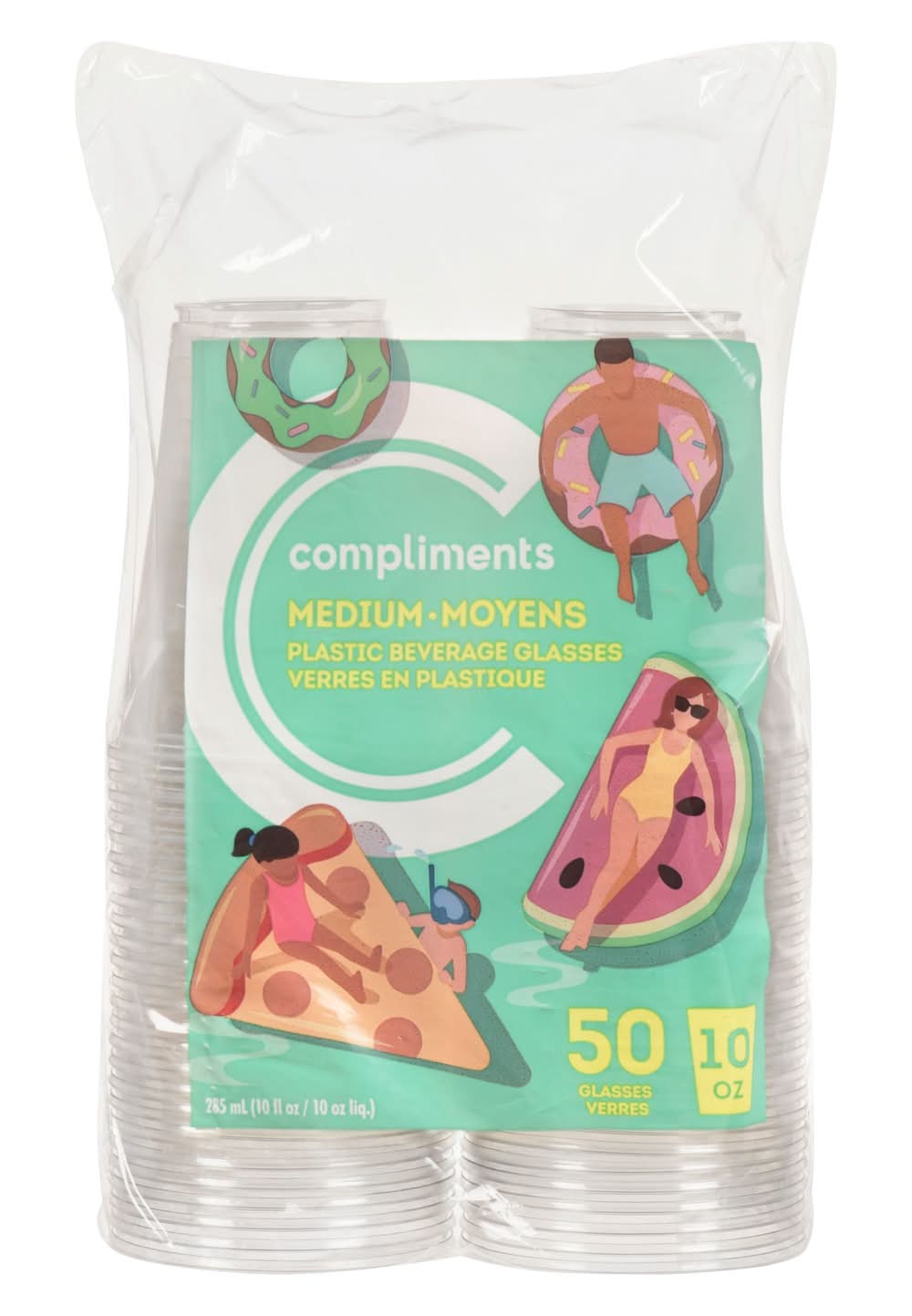Compliments Plastic Beverage Glasses 10 oz, Medium (50 ct)