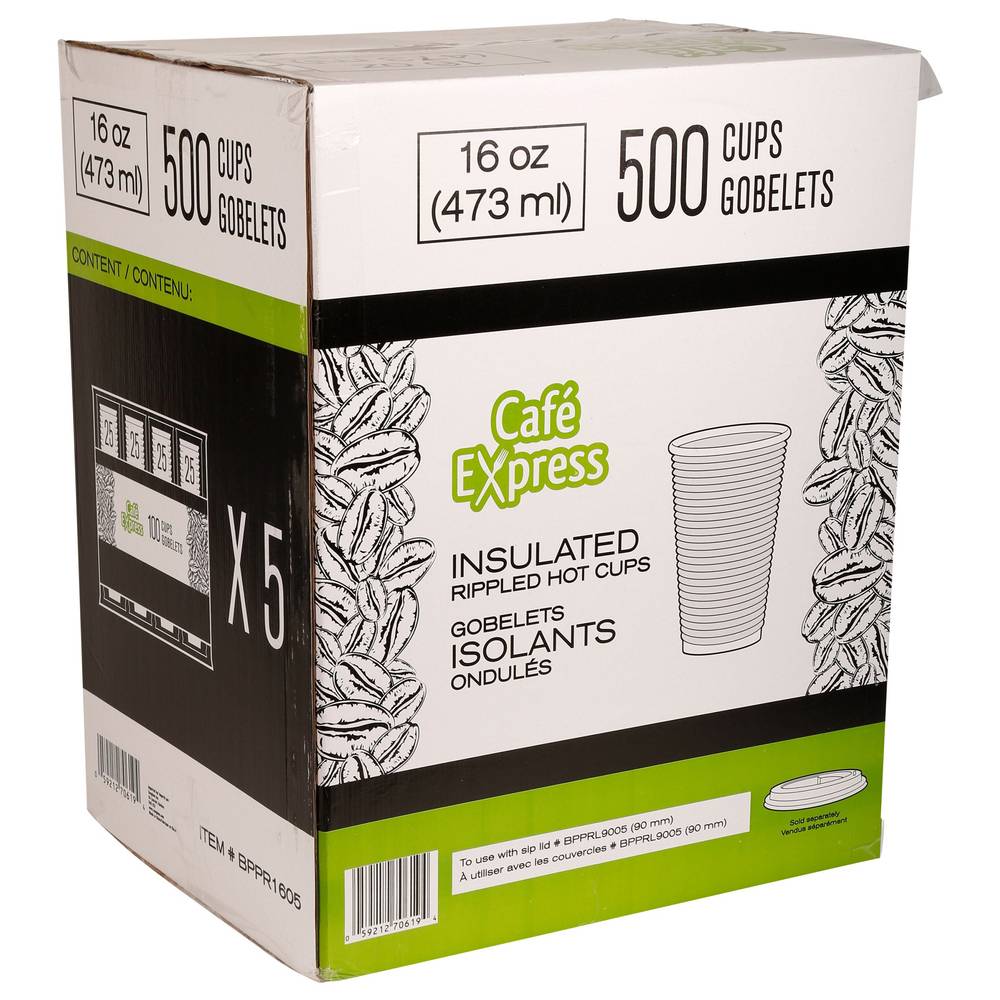 Café Express Insulated Rippled Hot Disposable Cups 473 ml, Brown (500 ct)