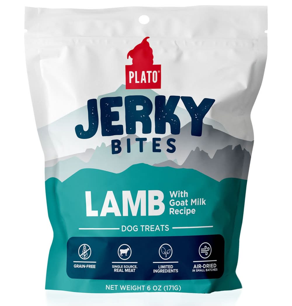 Plato Jerky Bites Dog Treats, Lamb Goat Milk (6 oz)
