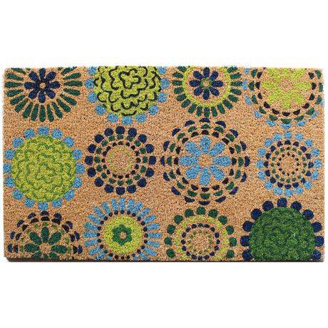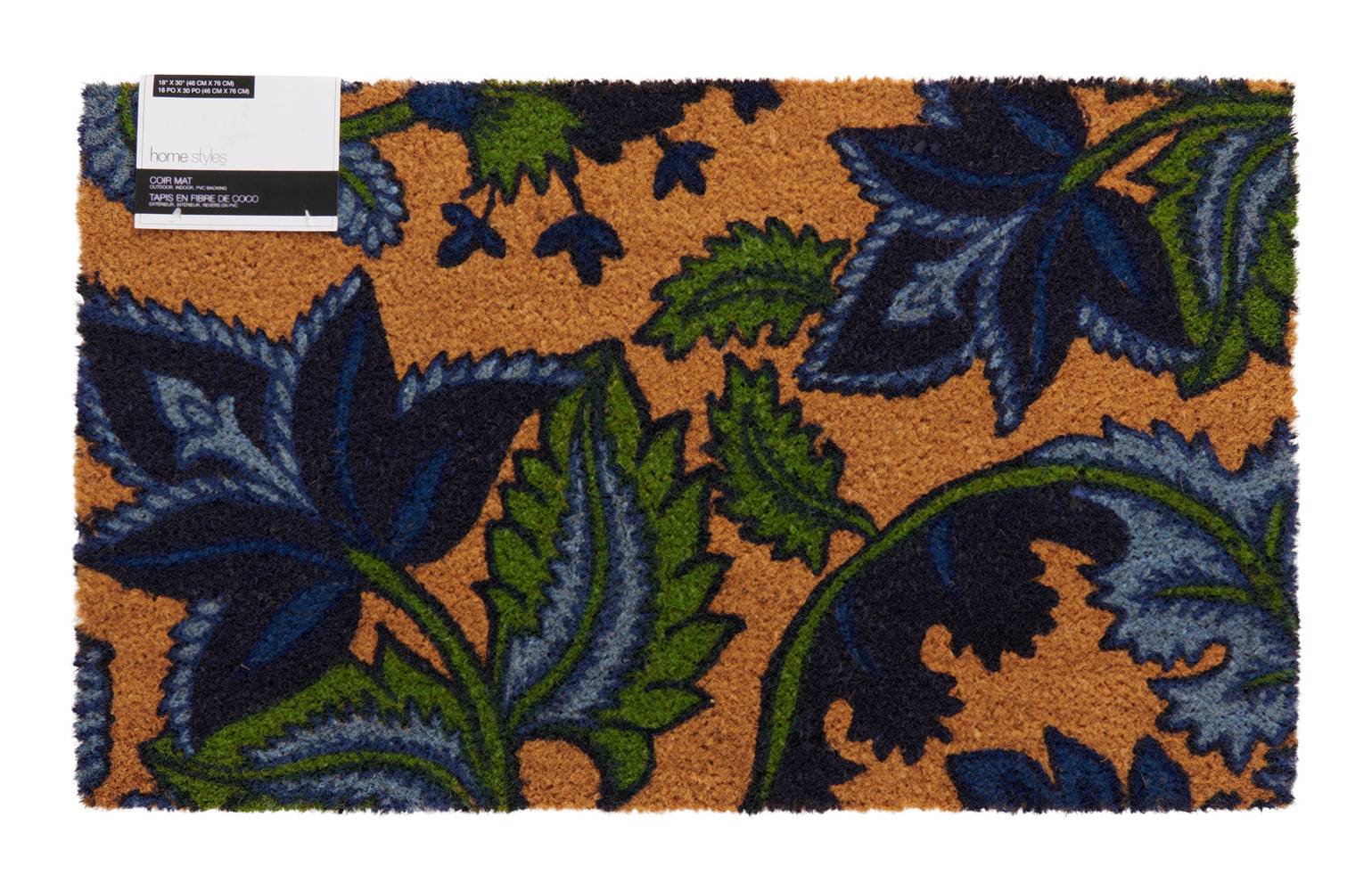 HomeStyles Garden Theme Coir Mat, 18x30 in, Blue Floral