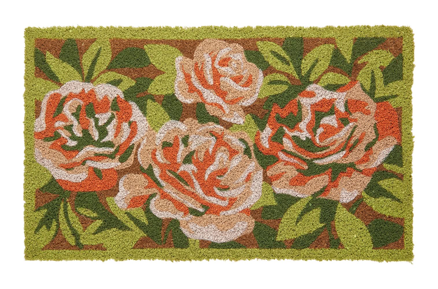 Floral Coir Non Slip Door Mat, 18 x 30 In, Rose