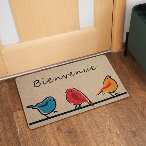 Linen Chest Oiseaux Bienvenue Doormat, 45.75x76.25 cm, Natural
