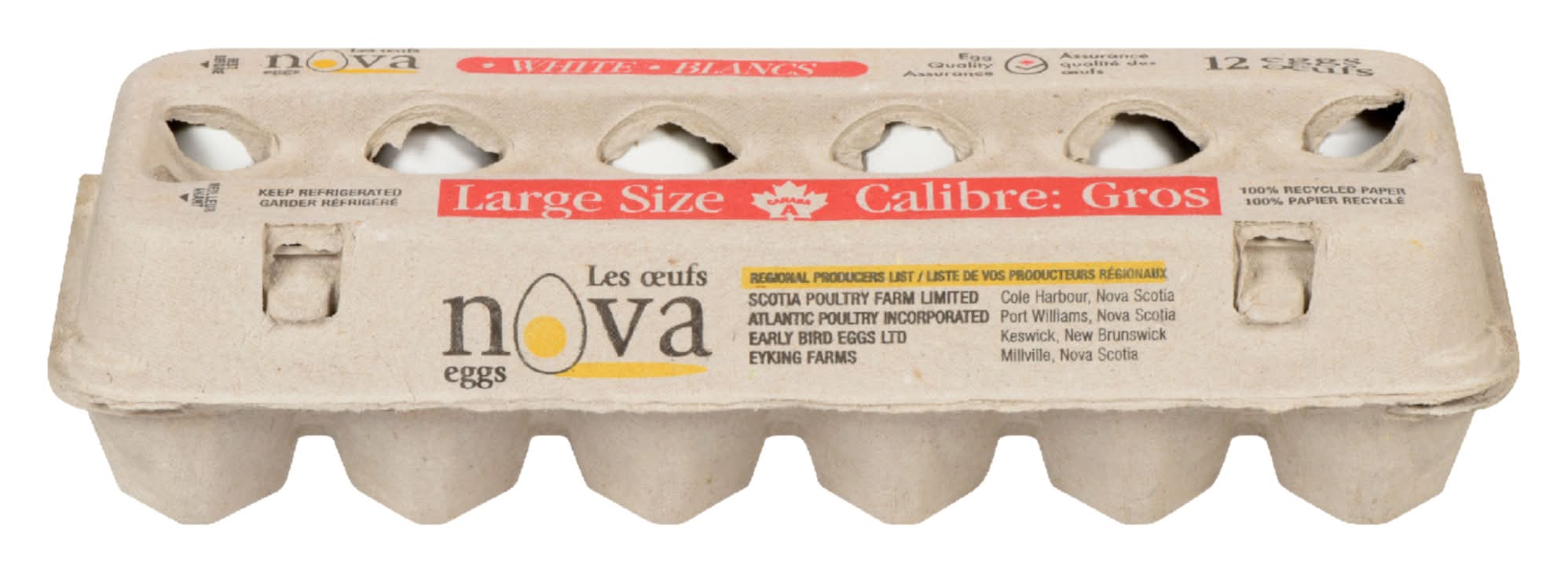 Nova White Eggs, L (30 ct)