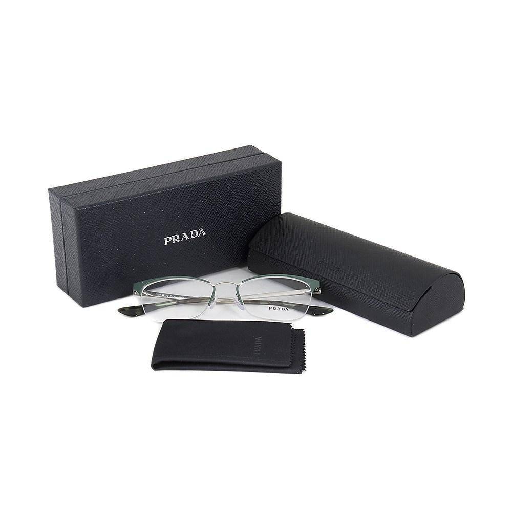 Prada Cinema Semi-Rimless Cat Eye Eyeglasses, Green and Silver Frame, Size 53 (65qv-uei1o1-53)