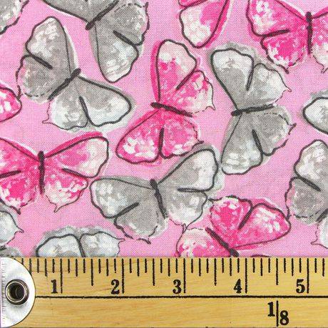 Fabric Creations Pink With Grey and Pink Butterflies Fat Quarter Pre-Cut Fabric