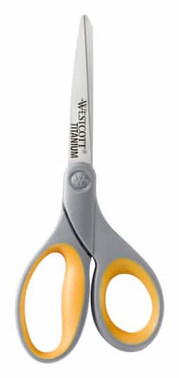 Westcott Soft Handle Titanium Bonded Scissors, 8 in, Grey-Yellow
