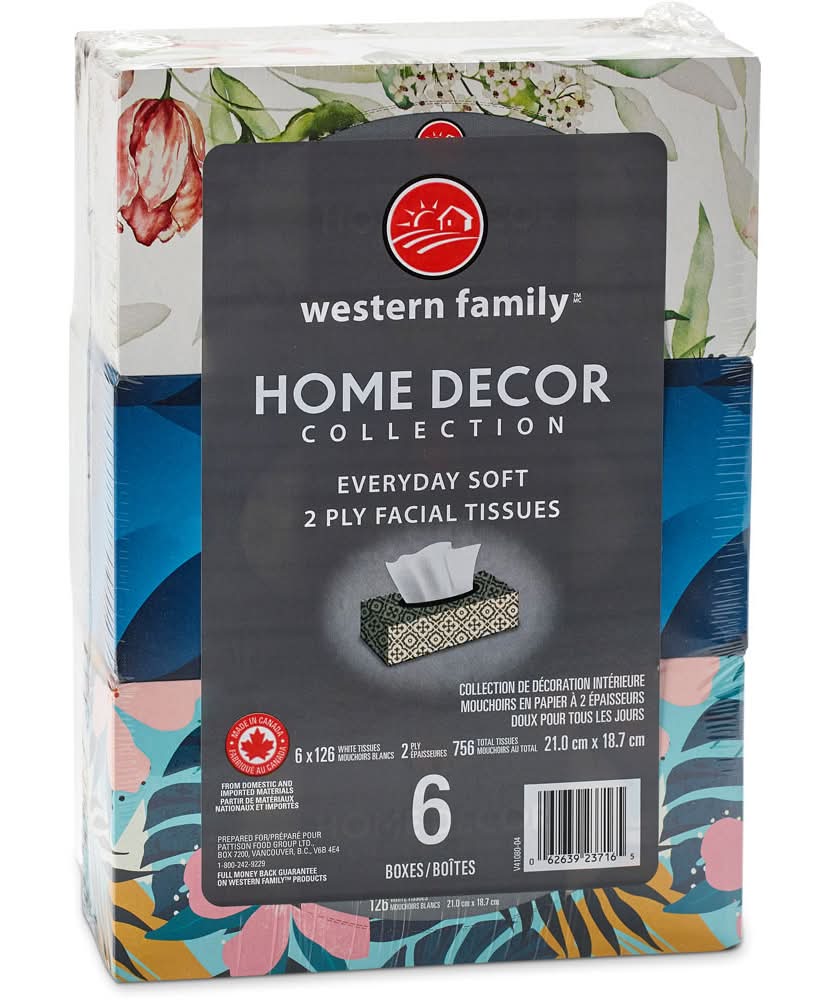 Western Family Home Decor Collection Everyday Soft 2 Ply Facial Tissues Multi pack, 21x18.7 cm, White (6 x 126 ct)