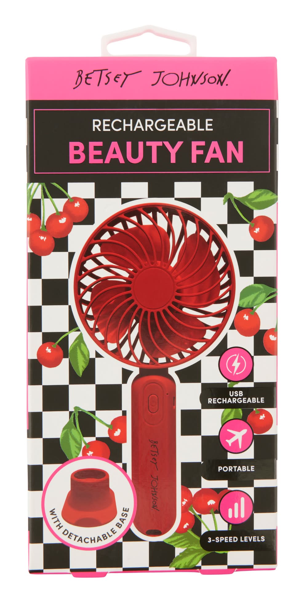 Betsey Johnson Rechargeable 3 Speed Portable Beauty Fan, Red