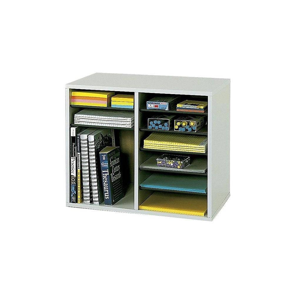 Safco 9420 Wood Vertical Adjustable Literature Organizer, 12 Compartments, Grey