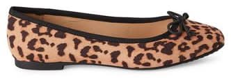 Time and Tru String Bow Ballet Flats, Women, 9, Leopard