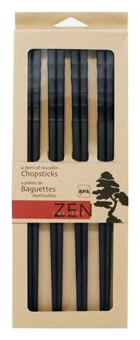Zen Cuisine Reusable Chopsticks Set, Black (4 ct)