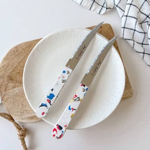 Beautiful Soft Grip Cutlery Knife Block Set, White-Gold (12 ct)