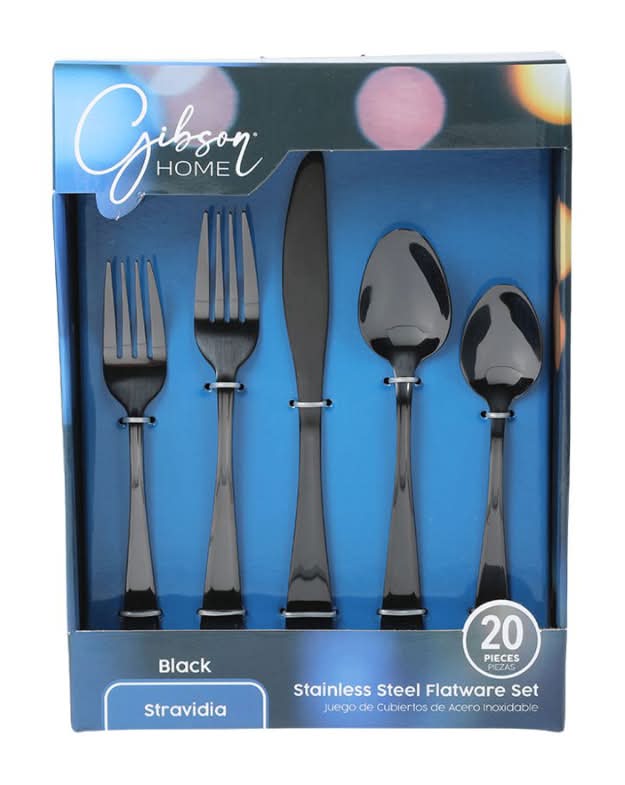 Gibson Home Stravidia Stainless Steel Flatware Set, Black (20 ct)