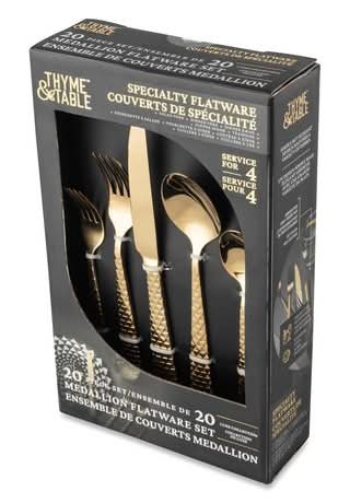 Thyme & Table Stainless Steel Medallion Flatware Set, Gold (20 ct)