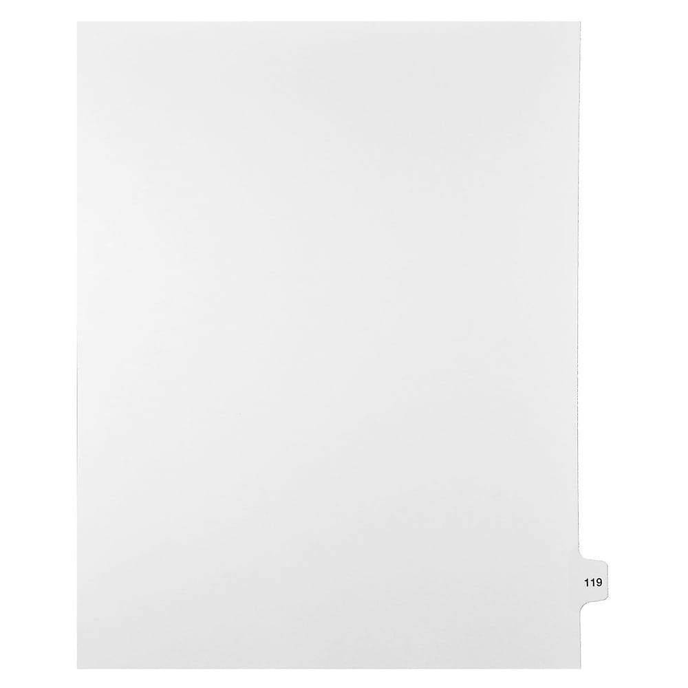 Mark Maker Legal Exhibit Index Tab White Single Tabs, 1/15th Cut, Letter Size, No Holes, Number 119, 25/pack