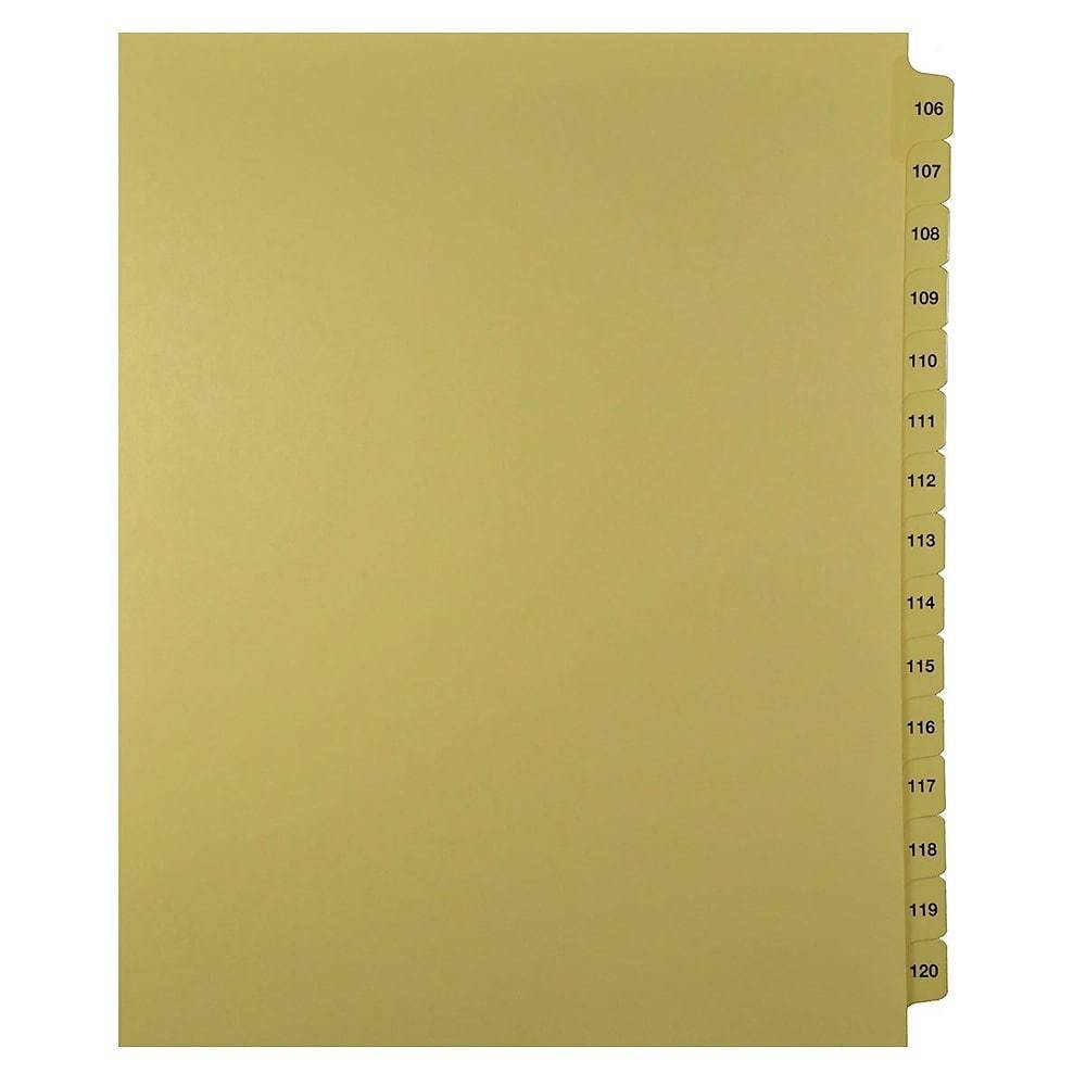 Mark Maker Legal Exhibit Index Tab Set Of Buff Single Tabs, 1/15th Cut, Letter Size, No Holes, Number 106 - 120