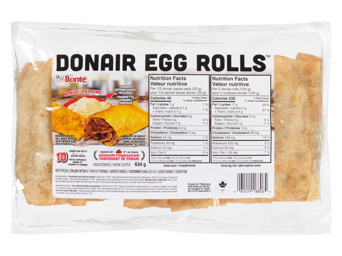 Bonté Donair Egg Rolls and Donair Dipping Sauce (634 g, 10 ct)
