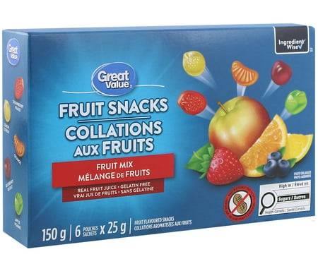 Great Value Fruit Snacks Pouches, Fruit Mix (6 x 25 g)