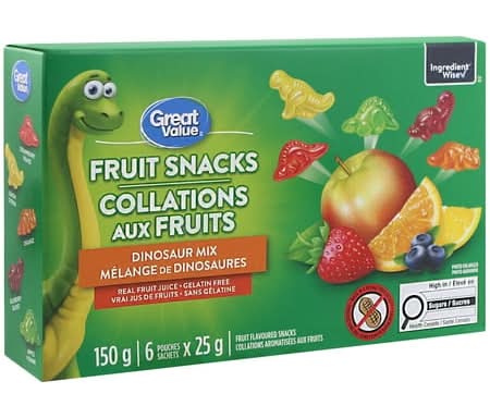 Great Value Dinosaur Mix Fruit Flavoured Snacks, Assorted (150 g, 6 ct)