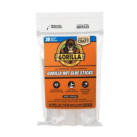 Gorilla Full Size Hot Glue Sticks, 4x0.43 in, Clear (30 ct)