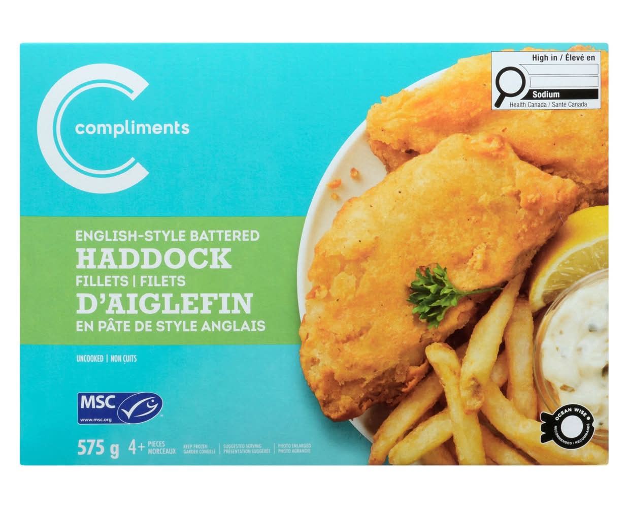 Compliments Frozen English Style Battered Haddock Fillets (575 g)