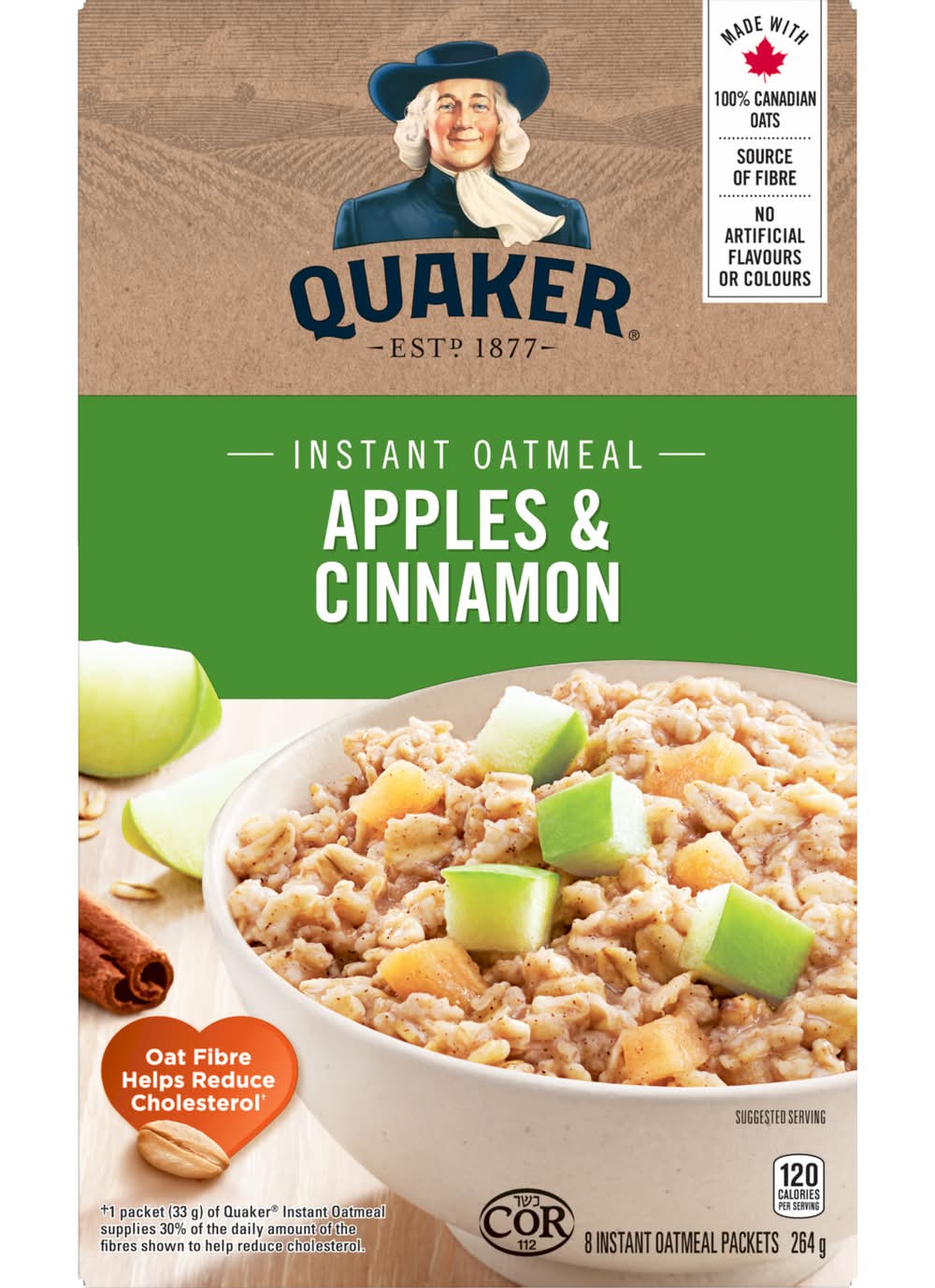 Quaker Instant Oatmeal Packets, Apples & Cinnamon (264 g, 8 ct)