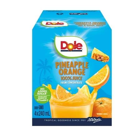 Dole 100% Juice From Concentrate, Pineapple-Orange (4 x 240 ml)