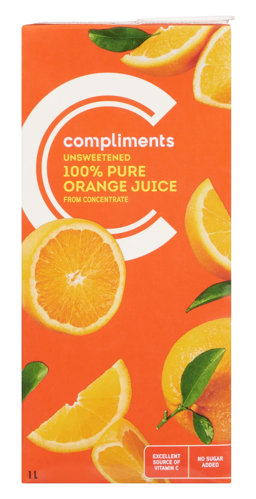 Compliments Unsweetened 100% Pure Juice, Orange (1 L)