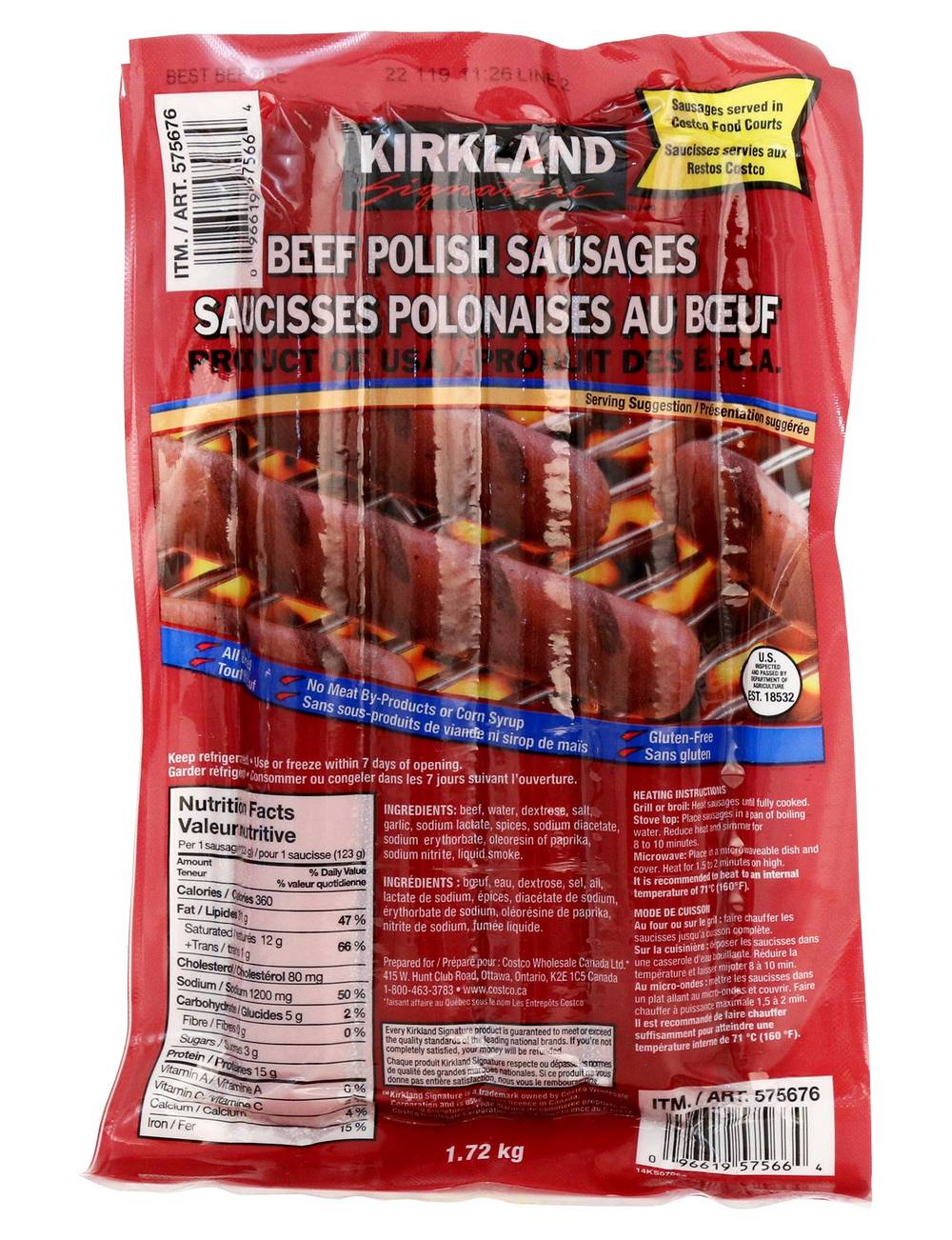 Kirkland Signature Beef Polish Sausages (1.72 kg)