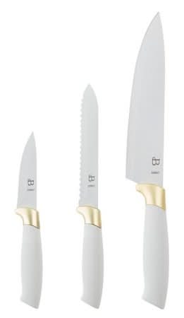 Beautiful Soft Grip Stainless Steel Chef Knife Set, White-Gold (3 ct)