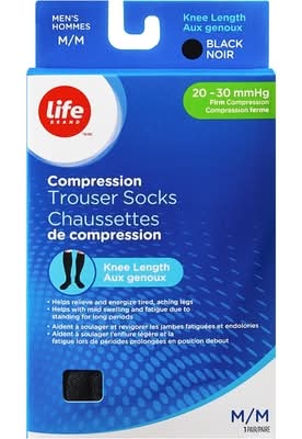 Life Compression Knee Length Trouser Socks, Men, M, Black Noir
