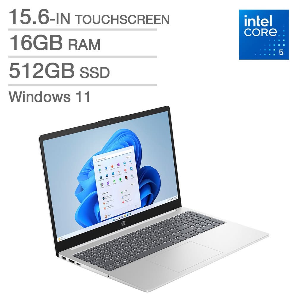 HP Intel Core 5 120u Touchscreen 16gb Ram Laptop, 15.6 in